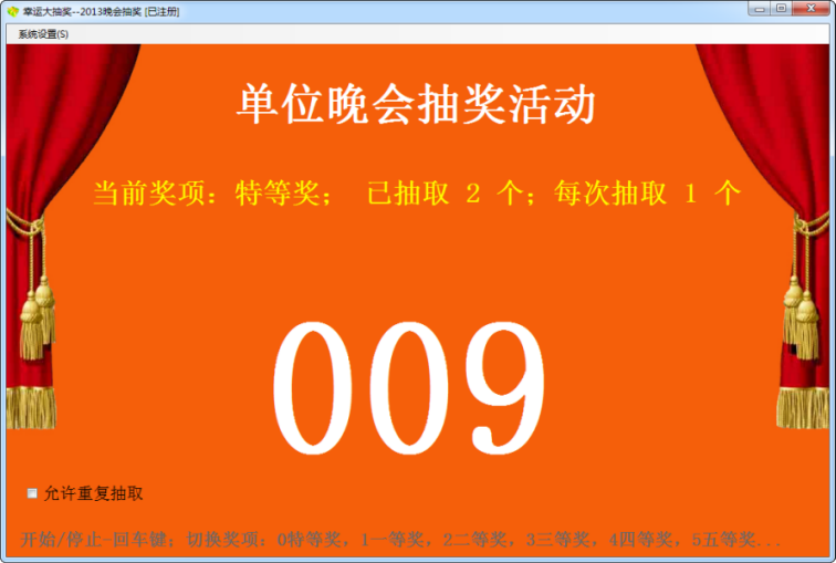 2、使用數(shù)字鍵進(jìn)行切換獎(jiǎng)項(xiàng),0為特等獎(jiǎng),1為一等獎(jiǎng),2為二等獎(jiǎng),如此類(lèi)推;
