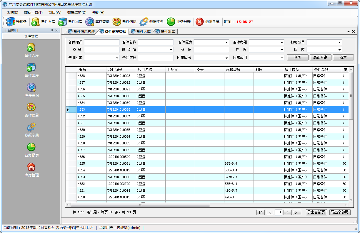 備件倉(cāng)庫(kù)管理系統(tǒng),是一款界面友好,方便易用的倉(cāng)庫(kù)管理系統(tǒng),集備件信息管理、備件入庫(kù)、備件出庫(kù)、庫(kù)存查詢(xún)、庫(kù)房管理、業(yè)務(wù)報(bào)表、權(quán)限管理、數(shù)據(jù)字典管理、備件及庫(kù)存導(dǎo)入等功能于一體。