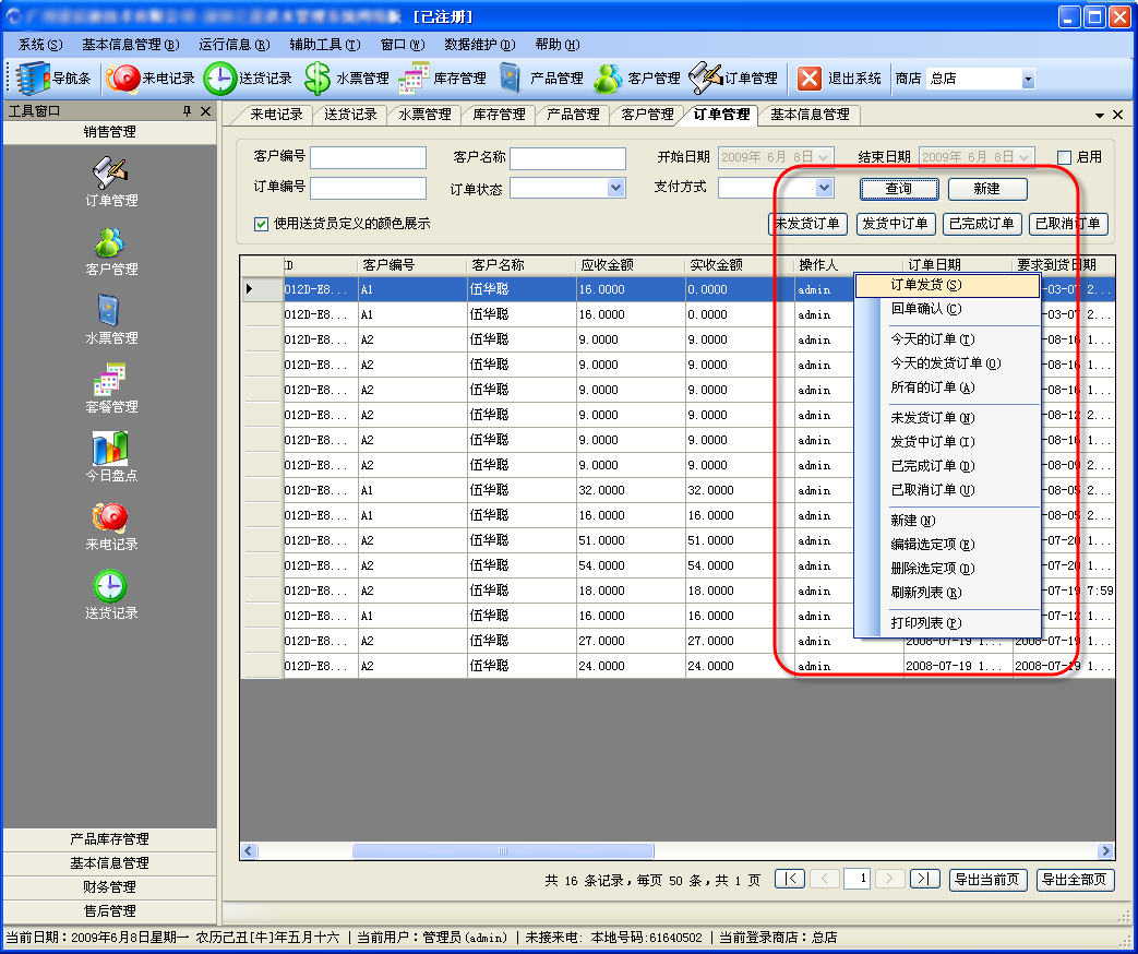 軟件主要功能有來(lái)電顯示及電話錄音、客戶(hù)管理、訂單管理、水票管理、權(quán)限管理、送水工管理、庫(kù)存管理、財(cái)務(wù)管理、售后管理、報(bào)表打印等眾多實(shí)用有效的的功能。